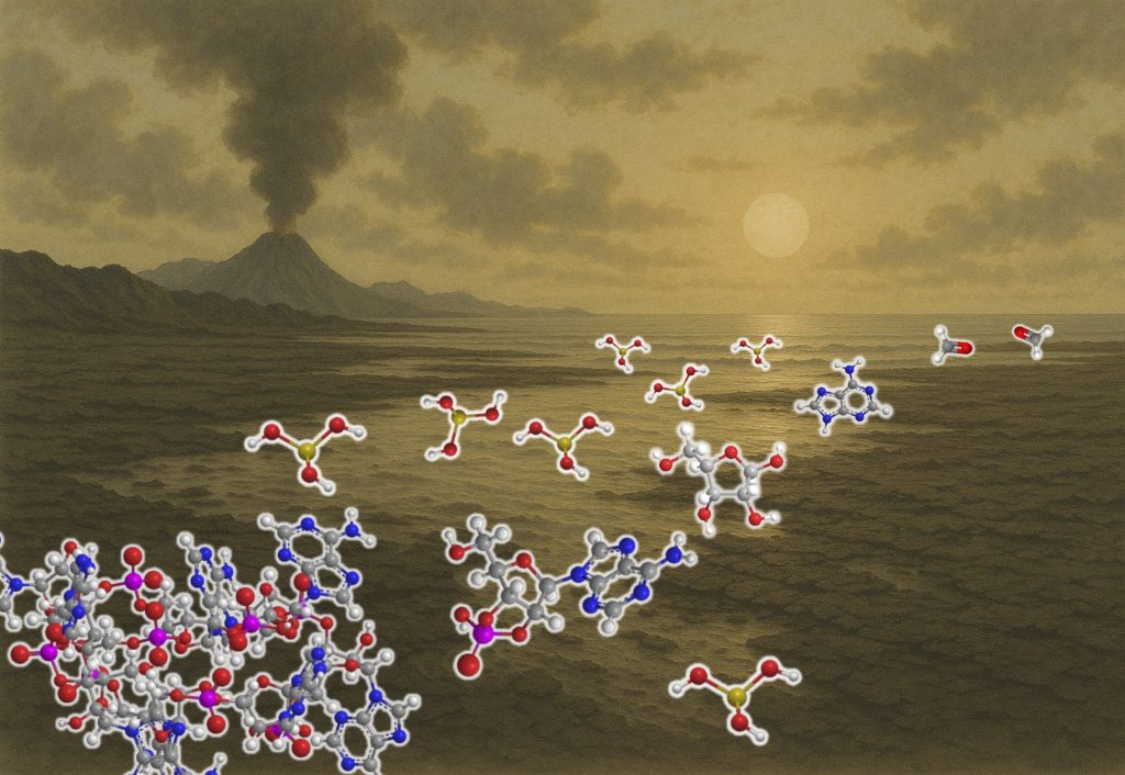 生命の材料分子から生命を構築する反応は原始地球環境が駆動したはずです。しかし、その環境は明らかになっていません。惑星有機地球化学研究室では、原始地球環境を再現した実験によって、原始地球に存在した糖や核酸塩基やアミノ酸などの材料分子からRNAやタンパク質などの生命を駆動する分子が生成する環境を特定するための研究を行っています。